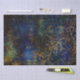 Papier de tissu victorien gothique peint en bleu foncé, cuivre et patine avec des fleurs dorées ornées.