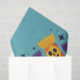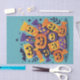 Enveloppez vos cadeaux dans l'esprit d'une moisson hantée avec ce papier de tissu bleu turquoise et vibrant. Un défilé de jack-o-lanternes et de charmantes bonbons éffrayants remplissent le design, avec une chauve-souris espiègle montant au-dessus. Des pops audacieux de violet, d'orange et de noir créent un look festif et inoubliable, ce qui en fait la touche finale parfaite pour toute célébration d'Halloween.