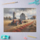 A timeless rural scene featuring a classic red tractor parked in a golden wheat field, with an old weathered barn standing proudly in the background. A beautiful slice of country life—perfect for rustic decoupage, farmhouse décor, or nostalgic crafting projects.