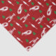 Donnez à vos cadeaux de Noël une touche nautique avec ce papier de tissu. Il est décoré d'un motif de homards blancs et de bouées de pêche en bois vintages contre un arrière - plan rouge aux accents festifs de sapins verts.