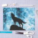 Papier Mousseline Howling Wolf Hiver neige bleue fumée Abstraite