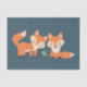 Papier de tissus avec une illustration graphique de 2 renards oranges à l'air mignon et heureux. Arrière - plan vert foncé.