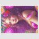 Portrait d'une belle fée fuchsia imaginaire avec fleurs rouges fuchsia rose sur ses cheveux et papillons. Art original par Gifts_AtTheCorner Mjm©2023.