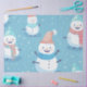Papier Mousseline Joli Snowmen Snowflakes Ice Blue Noël