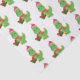 Joli enveloppement de Noël spécialement pour les enfants qui aiment les dinosaures! Caractéristiques motif de vert souriant T-Rex en chapeau santa et écharpe sur arrière - plan blanc.
