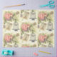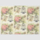 Ce joli papier de tissu a un charmant motif vintage de cartes postales françaises rétro avec la Tour Eiffel allumé, de belles roses roses, un oiseau-chanteur dans une cage et un spray de fleurs de Lily de la Vallée.