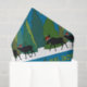 Design festif et unique de Melissa J Barrett avec orignal et wapiti portant des chapeaux de Père Noël rouges tandis qu'ils se baladent dans la forêt de pins ensemble. Inclut les mots, "Sois Jolly."