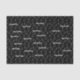 Ces feuilles de papier de tissu ont une image en noir et blanc avec un thème musical de notes de musique blanche sur un arrière - plan noir avec le texte Joyeux Anniversaire éparpillé partout.