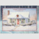 Votre message est facilement personnalisé (ou effacer si nécessaire). Une adorable maison blanche Cape Cod aux volets verts est décorée pour Noël. Il se trouve dans un paysage enneigé avec un arrière - plan de l'eau de l'océan et la frontière d'une scène hivernale de forêt enneigée. Un beau collage est superposé avec un doux calque d'éphémère blanc qui a manuscrit script de calligraphie et d'autres éléments vintages ajoutant de la texture et de l'élégance. Graphiquement conçu par Audrey Jeanne Roberts, artiste et designer de renommée internationale, Copyright.