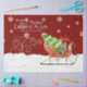 Votre nom de magasin ou votre nom de famille est facilement personnalisé en utilisant le champ modèle fourni. Design de Noël lumineux, coloré et gai en rouge et blanc avec des flocons de neige, des tourbillons et des fleurs et une aquarelle peinte Père Noël traîneau chargé de cadeaux et d'un arbre de Noël. Cette oeuvre a été peinte et dessinée graphiquement par Audrey Jeanne Roberts, artiste et designer de renommée internationale.