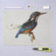 Ce dessin présente une aquarelle de l'artiste anglais John Ruskin (1819-1900). Il montre un martin pêcheur, un petit oiseau aux couleurs vives ; il a un plumage bleu vif sur ses ailes et des plumes oranges sur sa poitrine. Le martin-pêcheur a un bec long, pointu et pointu, qu'il utilise pour chasser les proies. L'oeuvre originale a été créée en 1871.