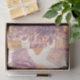 Une élégante dame squelette de La Catrina dans un grand casquette en plumes, entourée de marigolds, bougies, bannières de picado papel et motifs traditionnels d'art populaire mexicain. Belles couleurs de mauve, rose et orange muet dans une texture douce aquarelle. Superbe papier de découpage pour les projets artisanaux. Parfait pour célébrer 'Dia de Muertos' ou 'Jour des Morts' et Halloween.