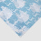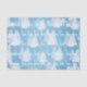 Papier de tissus de vacances avec cerf de silhouette blanche et arbres blancs recouverts de neige sur un arrière - plan de bleu.