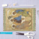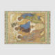 vintage peinture chrétienne médiévale par andre rublev de son interprétation de la trinité avec trois anges avec ailes dorées, halo, vert, rouge, et des manches d'or, assis ensemble autour d'une table. bel art illustratif en or et vert, dans une peinture religieuse délicate et raffinée.