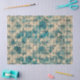 Un pochoir bleu/vert dessine des fleurs sur un arrière - plan d'écriture cursive et d'abeilles. Le arrière - plan est un bronzage léger. Parfait pour le découpage, l'artisanat ou l'emballage de cadeaux. Assurez-vous de retirer le sac cadeau correspondant!