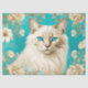 fleurs blanches d'arrière - plan turquoise et une belle Lilac Lynx point Siamese cat AI Art par minx267