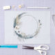 Papier tissulaire avec une illustration mystique. Une lune bleu foncé avec un contour élégant en cercle mince et des fleurs blanches fleurissent le long de ses bords.