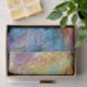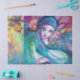 Coloré, capricieux, unique, peinture artistique aquarelle en bleu aqua clair, vert, turquoise, rose, fuchsia, blanc, brillant couleurs irisées, feuille dorée et argent, inspiré du Carnaval de Venise.2009.