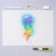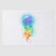 Grande méduse irisée, artistiquement dessinée, brillante, avec de longues tentacules sur le blanc, peinte sur l'arrière - plan multicolore. Méduse arc-en-ciel.