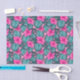 Papier Mousseline Monstera feuilles et Hibiscus Turquoise et rose su