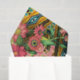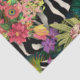 De jolies marguerites roses, des freesias jaune vif et des feuilles de palmiers vert foncé ornent une large bande diagonale d'imprimés zèbres noirs et blancs et d'imprimés indiens jaunes et turquoise. Le résultat est un collage floral tropical qui ajoutera une pop dramatique de couleur.