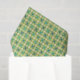Ce papier de soie de soie comporte un motif géométrique dans vert et le bleu sur un arrière - plan beige. Perfectionnez pour envelopper des cadeaux pour n'importe quelle occasion.