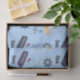 Bateau et bateau avec texte sur le design arrière - plan bleu motif.