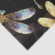 Motif sans couture avec or, bijoux, libellules brillantes avec ailes détaillées et pétillantes sur arrière - plan noir. libellule d'or.