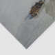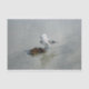 Sur une plage atlantique de côte, une mouette se tient contemplativement dans le sable humide, près d'un bloc d'algue