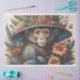 Beautiful and mystical fun chimp monkey with flowery hat. Perfect for all your decoupage projects and furniture transformation decoupage transferts.