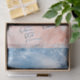 Joyeuses fêtes - Elégant papier de tissu de Noël bleu clair et couleur corail avec de beaux ornements de Noël, lumières brillantes blanches, tinsel brillant et espace pour votre texte.