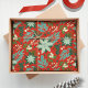 Ce beau papier d'emballage de Noël présente des éléments floraux dessinés à la main dans différentes nuances de vert, menthe, turquoise, blanc cassé. On y trouve du pin, des fleurs, des sprigs, des feuilles, des baies dans un design motif moderne. La couleur arrière - plan est un rouge traditionnel de Noël, classique. Oeuvre originale de Caroline Bonne Müller