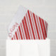 Sucre de canne motif rayé irrégulier avec alternance de rayures épaisses et fines en rouge et blanc. Avec des rayures blanches à chaque fin avec Joyeux Noël en caractères rouges qui peut être personnalisé avec votre propre message.