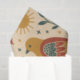 This artwork depicts two stylized birds facing each other, surrounded by curling vines, tiny stars, and floral motifs inspired by rural Bengal’s folk artistry. The warm palette of terracotta red, mustard gold, and teal blue echoes the natural dyes once used in handmade quilts.