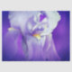 Papier cadeau avec l'image d'une fleur Iris bleu pâle contre un arrière - plan bleu.