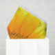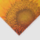 Papier cadeau avec l'image d'un tournesol jaune contre un arrière - plan de pois noir et blanc.