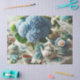Papier Mousseline Papier Décollé Fleurs d'Hydrangea Bleues et Théièr