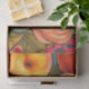 Éclairez n'importe quel espace avec cette scène estivale joyeuse. Une belle femme blonde sourit alors qu'elle se détend au milieu d'une abondance de pêches mûres et de feuilles verdoyants. Autour d'elle se trouvent des piles de fruits sucrés dans les tons coralliens, jaunes et rougis, nichés au milieu du feuillage. Les couleurs naturelles douces et la composition décontractée créent une sensation de chaleur et de détente.