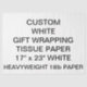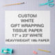 Papier TISSU BLANC PERSONNALISÉ ÉPAISSE DE 18 livres 17" x 23" (GRANDE TAILLE), imprimé sur mesure, pour le Modèle vierge.Concevez, créez, faites le vôtre. Votre photo, image, texte, logo, graphiques en couleurs complètes de bord à bord. Papier de 10lb également disponible en 7 couleurs, comparable au papier de tissu standard. Idéal pour emballer des bijoux, des petits cadeaux, des fêtes, des bouteilles de vin et de champagne et pour rajouter des boîtes cadeaux.