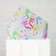 Papier d'emballage en tissu coloré avec des graphiques de confettis et rubans bleus, rouges, verts, jaunes et roses. Customisez d'ajouter votre propre texte.