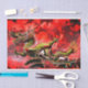 Tissu papier avec l'image d'un dragon contre un arrière - plan rouge.