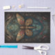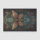 Une image hantante d'un beau papillon avec défilement orné tout autour et un paysage somptueux.