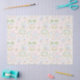 This Christmas tissue paper features pastel nativity scenes of baby Jesus sleeping in a manger with Mary and Joseph, three wise men and angels. There is a light pink striped background.