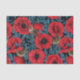 Papier Mousseline Pavot rouge et brunes, feuilles bleus sur noir
