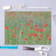 Photographie de pavots au milieu de fleurs de maïs bleues dans une prairie estivale. Un filtre souple fait apparaître l'image comme une peinture.