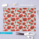 Tissus papier dans un motif délicat de pavots rouges vibrants avec des tiges vertes profondes et des feuilles, sur un certain temps arrière - plan, avec, chaque fleur de pavot unique courbé et tordu, comme si se balançant doucement dans la brise.