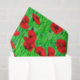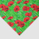Papier de tissus dans un motif d'aquarelle semi-abstrait de pavots rouges dans un champ, contre des tiges vertes et des feuilles