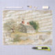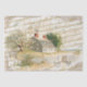 Little Beach House Peinture vintage avec acFrench Script et journal français vieilli en arrière - plan. Complète avec des petites poules, une serre dans la cour, et un coq sur la cheminée.