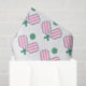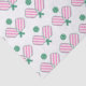 Ce papier d'emballage d'anniversaire comporte un motif de pagaies à pickleball. Les couleurs sont roses et vertes.
