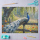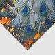 beautiful piebald peacock standing on a split rail fence in wildflowers AI Art by minx267